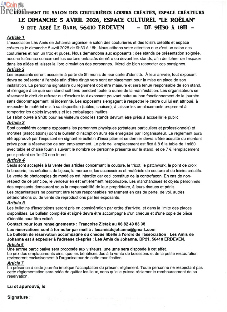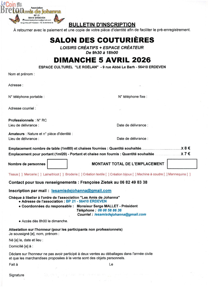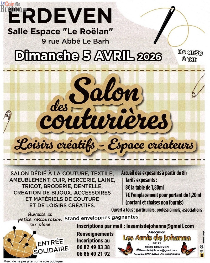 Notre association Les Amis de Johanna organise son 5ème salon des couturières ouvert aux particuliers, professionnels, associations le dimanche 5 avril 2026 de 9h30 à 18h00.